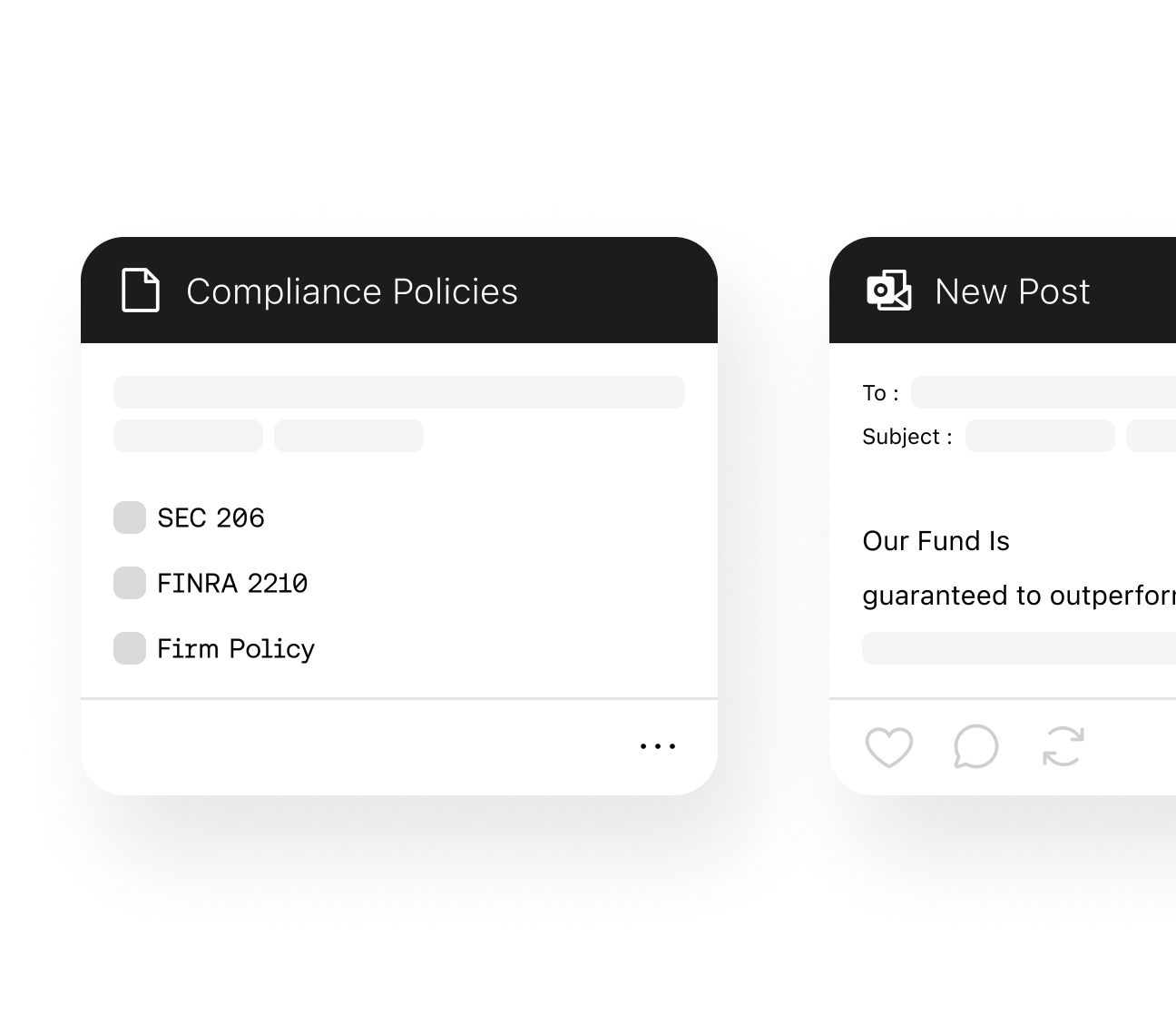 Your compliance policies live right where your people write. SEC, FINRA, and firm policy. All active in Outlook, LinkedIn, and everywhere else. No gap between rules and reality.